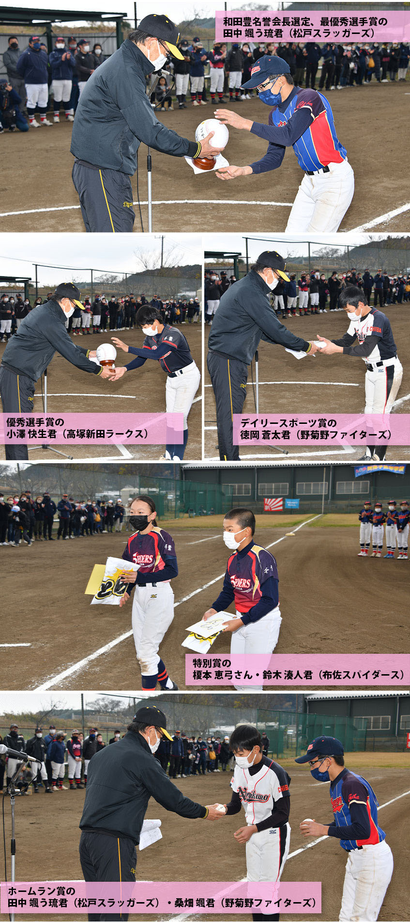 今シーズンから新たにファーム監督に就任した和田豊監督の地元、千葉県我孫子市と松戸市で「和田豊旗争奪少年野球大会」が開催され、昨年12月12日に我孫子市少年野球場で決勝と3位決定戦、表彰式が行われました。